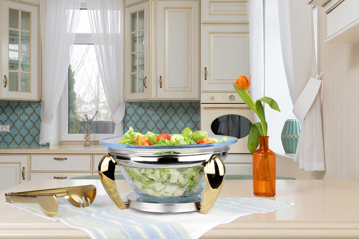 – به جای سرو سالاد در بشقابهای پراکنده، یک ظرف مخصوص سالاد روی میز نظم و هماهنگی بیشتری ایجاد میکند. - هارمونی با سایر ظروف.